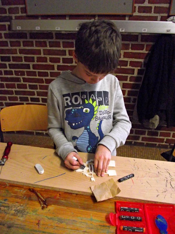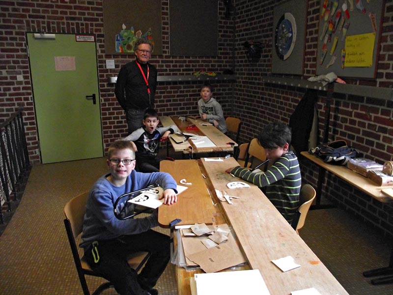 Montagnachmittags hörte man seltsame kratzende Geräusche in unserer Schule. Auf Nachfrage gab’s die Antwort: Die Holzwürmer sind aktiv. Unter der Anleitung von Herrn Menzendorf lernten mehrere Jungen den Umgang mit der Laubsäge. Wer selber schon einmal mit diesem Werkzeug gearbeitet hat, weiß: Es kann ganz schön anstrengend sein, ein größeres Teil auszusägen. Danach müssen die Schnittkanten glatt geschmirgelt werden. Anschließend kann das Kunstwerk auch noch angemalt werden.