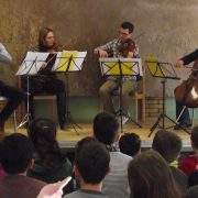An einem normalen Montagmorgen saßen 140 Mädchen und Jungen gespannt im Forum unserer Schule. 2 Frauen und 2 Männer betraten mit ihren Instrumenten die Bühne und spielten ein bekanntes Stück: Die kleine Nachtmusik.