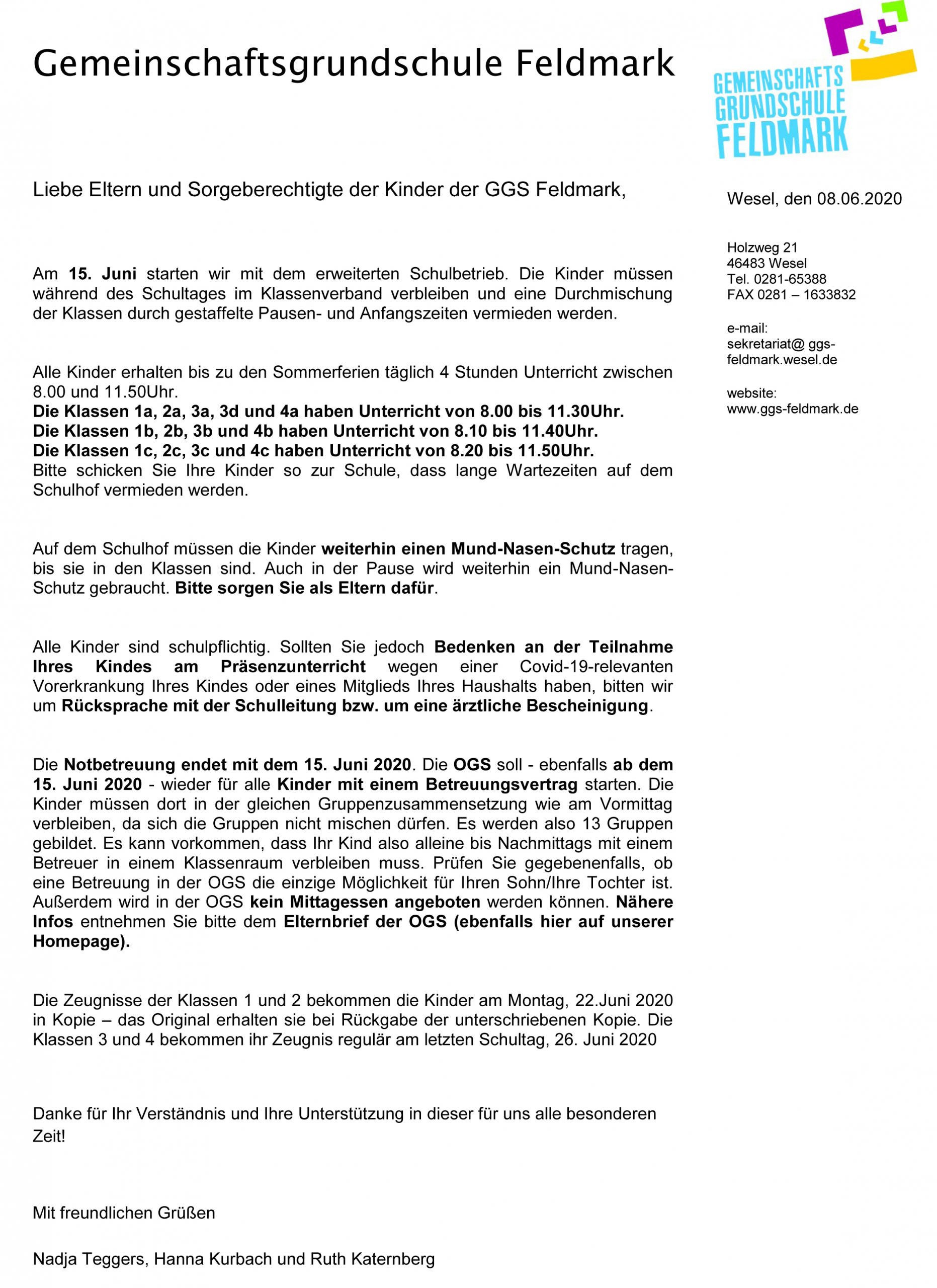 Liebe Eltern und Sorgeberechtigte unserer Schüler der GGS Feldmark,