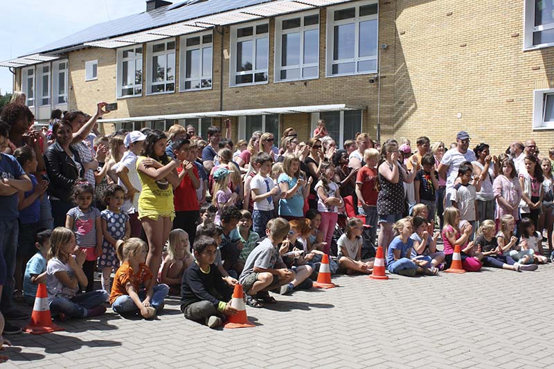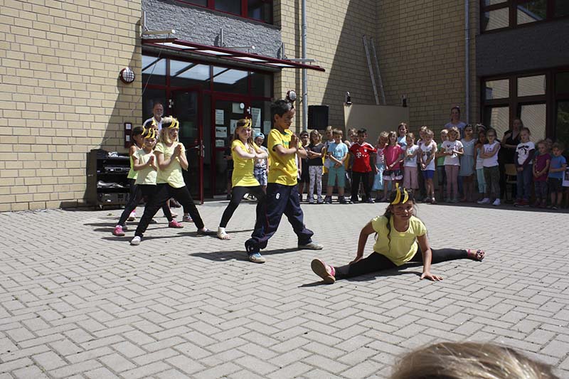 Als Abschluss der Projektwoche fand am 10. Juni 2016 in unserer Schule ein Schulfest statt. Eröffnet wurde es um 14 Uhr von Herrn Mömken, unterstützt durch die Tanz-AG und zwei Klassen, die mit Unterstützung ihrer Lehrerinnen ein Lied sagen und einen Mitmachtanz aufführten.
