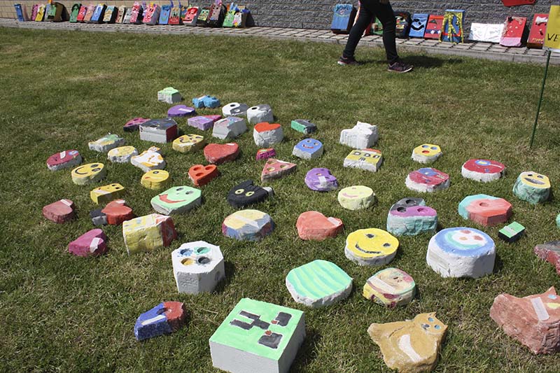 Anschließend wurden die Ausstellungen auf dem Schulhof, im Schulgarten und im Neubau eröffnet und die Werke der Kinder aus der Projektwoche konnten von allen Besuchern bestaunt werden. Ab 15.30 Uhr standen sie dann erst den Künstlern und danach auch dem restlichen Publikum zum Verkauf offen.