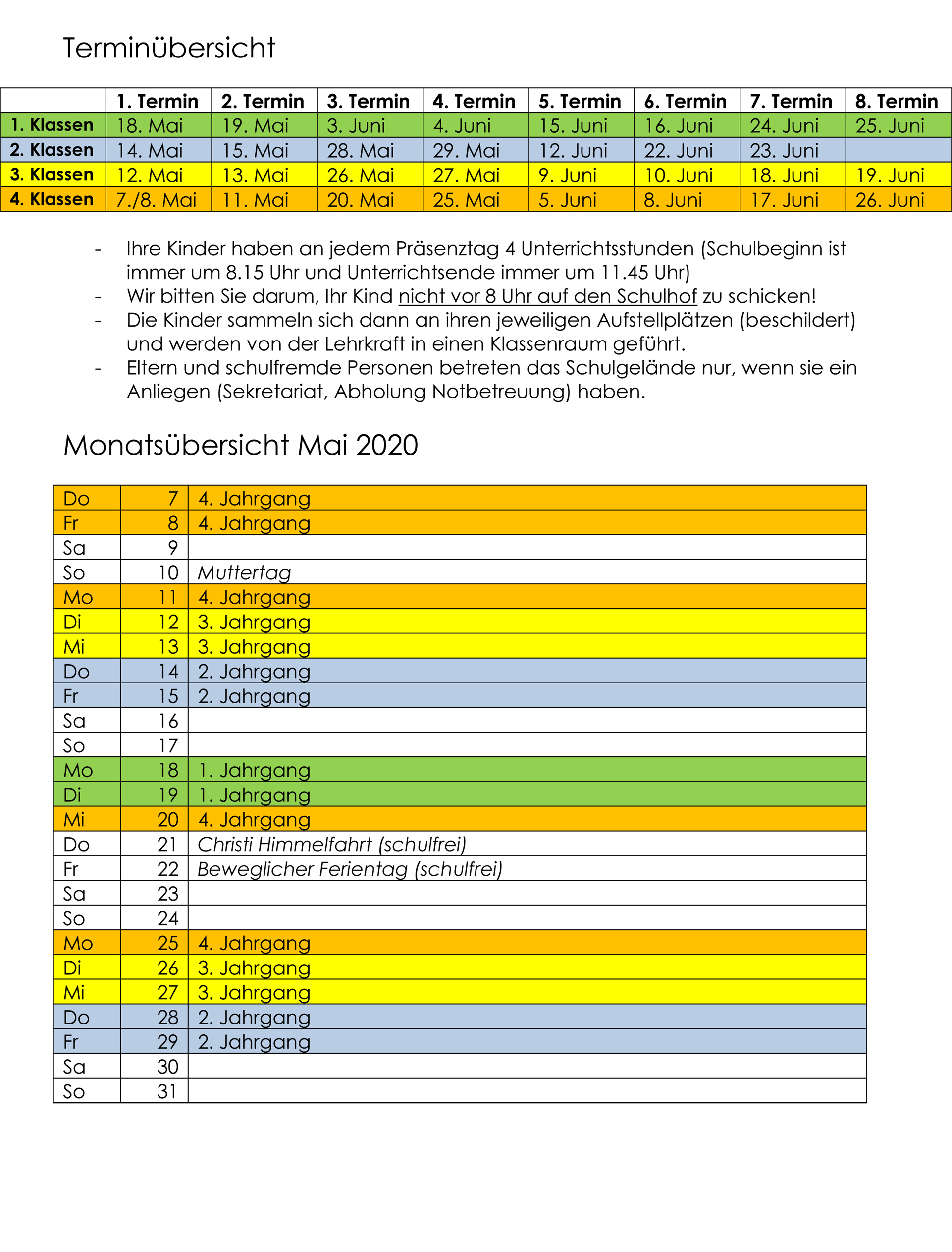 Terminübersicht – Schule ab 11.05.2020