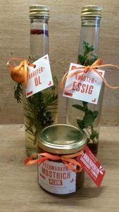 Es gibt selbstgemachte Delikatessen zu kaufen.